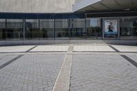 View of a modern architecture building in the business district of Toronto, Ontario. The glass facade reflects the city skyline. The busy urban scene includes a plaza with tiled flooring and a courtyard with a line of trees.