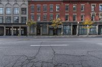 an empty city street with the buildings and signs showing signs for businesses that are closed