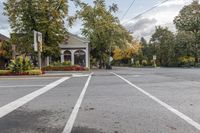 A classic residential area in Toronto, Ontario. The tree-lined streets, lined with houses and buildings, showcase the beautiful architecture. A gloomy autumn day adds to the charm of this suburban neighborhood.