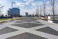 A view of a modern cityscape in Toronto, Ontario. The straight road lined with high-rise office buildings creates a stunning urban landscape. The cloud-filled sky adds drama to the city's vibrant business district.