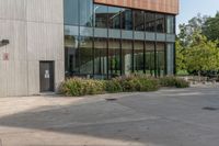 A view of a suburban neighborhood in Toronto, Canada. The residential area features tree-lined streets and open spaces. The theater building stands as a fixture in the urban design, casting hard shadows on the road surface. A picturesque scene on a sunny day.