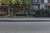 This stock photo features a residential neighborhood in Toronto, Ontario, Canada. The image showcases a street with green buildings and two stores on both sides of the road. Lining the sidewalk, there are trees and shrubs, giving the area a refreshing touch of nature. The houses in this suburban area have a classic architectural style, with facades adorned with windows, columns, and sash windows. The asphalt road and concrete sidewalk provide a smooth and sturdy road surface. The image captures the essence of real estate in this town, showcasing the beautiful properties and homes in the peaceful and charming neighborhood.