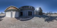 the reflection in the lens of a building is as if it were taken from a 360 - zoom