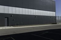 This image showcases the contrasting architecture in urban Toronto, Canada. In the foreground, a modern black building stands tall, while next to it is a vacant lot representing a future development. The clear sky overhead highlights the hard shadows and low angles of the existing structures. The suburbs in the background showcase a mix of residential and office buildings with different facades and window shades. This photo captures the dynamic urban design and evolving landscape of Toronto's cityscape.