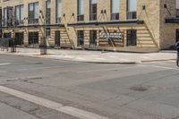 A modern residential area in Toronto, Ontario. The city's urban design is highlighted by the sleek architecture, brick facades, and clean lines. Streets lined with brick walls and vibrant crosswalks create a dynamic city life.
