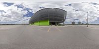 A modern architectural marvel in Toronto, Ontario. The bright building stands tall against the clear sky, surrounded by a spacious parking lot. This urban design masterpiece is a true reflection of city life.