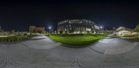A 360-degree view of Toronto's urban landscape, captured from an elevated ramp. The city's modern architecture is illuminated by artificial light, creating a captivating mix of light and dark. High-rise buildings, business districts, and residential areas blend harmoniously in this bustling metropolis.