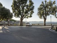 This image showcases the classic architecture and charming landscape of Tuscany, Italy. The photo captures the dawn breaking over an asphalt road lined with residential buildings. The open spaces are filled with lush vegetation, including trees and gardens. In the distance, a picturesque village can be seen nestled in the valley. The clear sky adds a touch of serenity to the scene. This photo represents the perfect blend of nature, architecture, and European charm that can be found in Tuscany.