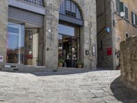 A picturesque street in an Italian village in Tuscany. Classic architecture surrounded by cobblestone roads and beautiful gardens. This charming European town offers a perfect blend of urban and open space.