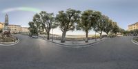 Tuscany, Italy: Street with Trees, Statue, and Buildings