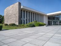 A clear sky overlooks the modern architecture and open spaces of Berlin's business district, located in the heart of Europe. The financial district boasts impressive office buildings and university campuses, along with museums showcasing the city's rich history.