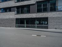 A grey urban alley-way in Bremen, Germany. Modern architecture with glass windows and a stone facade. The empty street leads to a large building, showcasing the city's urban design.
