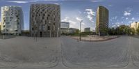 A modern office building in Barcelona's bustling business district. The sleek and innovative architecture stands out against the urban landscape. Clear skies highlight the vibrant energy of the city.
