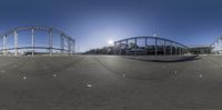 a series of three shots showing a roller coaster and other rides in the background while it sun shines