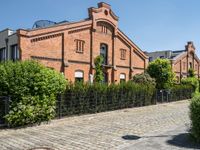 This image captures the charm of Berlin, Germany, with its classic architecture and cobblestone streets. The picture showcases some old buildings overlooking a brick sidewalk, where a bench and railing provide a comfortable spot to relax. The neighborhood exudes a sense of urban design and residential living. The clear sky above enhances the vibrant colors of the building facades. This photo is a testament to the city life in Berlin, combining both historic and modern elements. Explore the streets and appreciate the blend of Europe's past and present.