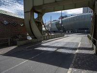 A classic European city scene in Bremen, Germany. The empty street showcases the city's classic and modern architecture under a clear sky. The brick streets and buildings are illuminated by the shining sun.