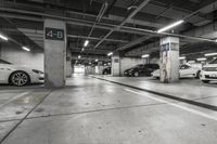 This is an image of a parking garage in a metropolitan area. The architecture and design of the building is modern and made of concrete. In the daytime, natural light illuminates the parking lot and street lights provide artificial light during the night. The surface of the parking deck is covered in ice, highlighting the wintry conditions. Cars and vehicles can be seen parked in the parking lot. This photo captures the urban atmosphere and the importance of public spaces in human settlements.