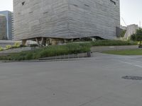 This stock photo showcases a modern office building located in the vibrant city of Dallas. The building is surrounded by a well-designed neighborhood with trees and a grassy public space. The road surface and concrete curbs enhance the urban design of the area. The photo captures the architectural elements of the building's floors, roof, and entrance ramp. The image represents the dynamic business district of Dallas, including museums, stadiums, and other commercial buildings. It is taken during the daytime, highlighting the modernity and liveliness of the city.