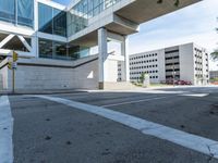 This is an image of a modern architecture in the business district of Milwaukee, Wisconsin. The cityscape is dominated by office buildings and urban infrastructure. The road and asphalt blend seamlessly with the surrounding architecture. The clear sky and clouds provide a picturesque backdrop to the city scene. This photo captures the essence of a typical day in the bustling business district of Milwaukee, WI.