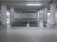 This is an aerial view of a city street in Hamburg, Germany. The modern architecture is characterized by straight roads, white buildings, and concrete surfaces. The image captures a parking lot with lines indicating parking spaces and a parking deck or garage. The urban landscape showcases the city's urban design and infrastructure. The ceiling and flooring are visible through the windows and columns of the buildings. This photo represents the urban atmosphere and modernity of Hamburg, Germany in Europe.