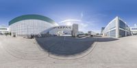 A skateboarder glides through the art district of Los Angeles, surrounded by the city's iconic architecture. Clear skies and rugged industrial structures create a unique backdrop for urban skating.