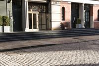 This stock photo showcases the stunning urban architecture of New York City. The city's iconic buildings, including residential homes, townhouses, and storefronts, are beautifully captured in the image. The photo gives a glimpse into the bustling city life with people walking on the roads and sidewalks. The unique facades, windows, doors, and cobblestone streets add character to the urban landscape. The hard shadows cast by the buildings create an abstract visual appeal. This photo specifically features the architectural charm of Manhattan and the vibrant neighborhood of Greenwich Village.