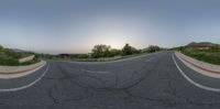 A straight road in Salt Lake City, Utah, lined with modern architecture. Clear sky illuminates the urban landscape. The view from an overlook point of view gives a unique perspective of the road. Dawn breaks over the concrete street.