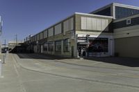 This stock photo showcases urban architecture in Toronto, Canada. The image features a low-rise residential building made of composite materials, with a modern facade and large windows. The building is located in a mixed-use property in a suburban area of the city. The day is clear, with a blue sky overhead. The street is lined with asphalt roads and street lights, creating a pleasant and safe urban environment. In the distance, there is a warehouse and an office building. This photo represents the urban design and real estate developments in Toronto.