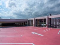 Daytime view of Miami Beach parking lot in the heart of the city. Concrete surfaces contrast with the clear sky. The urban art district adds vibrancy to the urban design of Miami.