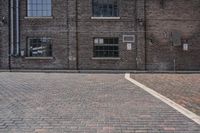 This is an image of a classic architecture building in Toronto, Canada. The brickwork and cobblestone surface of the road creates a charming urban atmosphere. The open space in front of the building features trees and a line of curbs. This photo captures the essence of Toronto's architecture and its industrial heritage. It represents a typical day in the city, where tourists can explore the art district and admire the unique materials and surfaces that give Toronto its character.