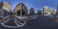 Urban Atlanta cityscape with modern and classic architecture. Clear sky casts hard shadows on the asphalt roads. City life thrives in the USA's Georgia, with bustling restaurants, bars, and storefronts lining the streets.