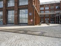 This stock photo showcases an urban scene in Berlin, Germany. The image features a cobblestone parking spot outside an old building, its facade displaying beautiful architecture. A sign that says 'U' hangs outside the building, adding to the charm of the scene. The ground is made of brick, giving it a vintage feel. The photo represents a typical day in the city, with open spaces and bustling streets. The building's windows and doors add character to the architecture. This image captures the essence of Berlin's urban landscape, with its mix of old and new structures. It is perfect for illustrating articles or websites related to urban, industrial, or art district themes in Europe.