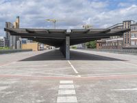 This stock photo features the urban design of Berlin, Germany. The city showcases a mix of classic and modern architecture, including buildings and roads with asphalt and concrete surfaces. The image captures a day with cloudy skies, providing a shade and creating a serene atmosphere. The urban setting includes an open space, with parking lots and parking decks for vehicles. The image also showcases an airplane, symbolizing the aviation and connectivity of the city. Overall, this photo represents the urban charm and architectural diversity of Berlin in Europe.