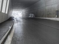 A cityscape with a road and bridge crossing over water. The urban infrastructure blends with the snowy landscape. The grey sky sets a moody backdrop for the metropolitan area.