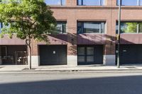 a building that has a tree in the front of it on a side walk by a street
