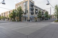 This stock photo features a building and street corner in an urban setting in Denver, Colorado, USA. The image showcases the vibrant cityscape as the dawn breaks, with a cloudy sky adding to the atmosphere. The road and asphalt lead to the low building, which is surrounded by other residential properties in the neighborhood. Open spaces with trees provide a refreshing touch to the urban landscape. Various modes of transport can be seen, highlighting the active nature of this real estate-rich city. The photo captures the bustling downtown area with its shops, offices, and storefronts. The clear sky provides a beautiful backdrop to the city's business district, while the crosswalk and crossing add to the human settlement's accessibility and functionality.