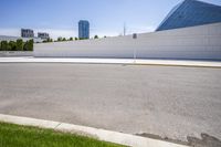 Low angle view of a modern urban cityscape. The curved road, lined with contemporary architecture, cuts through the residential area. Clear sky with contrails adds to the picturesque scenery.