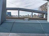 Urban Cityscape with Skyscrapers and a Skateboard Parked on a Platform