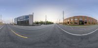 A quiet and empty city street in Salt Lake City, Utah. Modern architecture and office buildings line the road, with clear skies and sunshine illuminating the urban landscape. The perfect scene for a peaceful urban dawn.