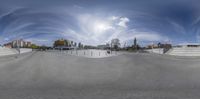the 360 - view lens photo of a skateboard park and skating course is shown