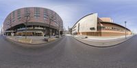 A snapshot of a modern city street in Berlin, Germany. The empty road, lined with sleek buildings and residential properties, is filled with cars. The yellow lines on the asphalt create a pattern, while the buildings reflect the vibrant urban landscape.