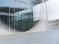 A modern architectural marvel in the heart of Berlin, Germany. The composite material facade blends seamlessly with the surrounding city. Reflections on the round building window create an artful display. The urban design and automotive influences are evident in this dynamic cityscape.
