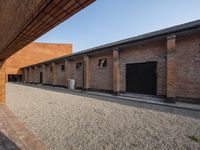 An urban scene in Shanghai, China featuring a mix of classic and industrial architecture. Brown brick buildings with beige facades line the streets, creating a unique and vibrant city landscape. Open spaces are adorned with art fixtures, adding a touch of creativity to the city.