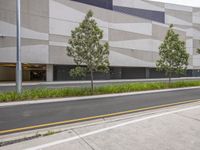 A city road with buildings and urban design elements. The road surface is lined with trees and vegetation, creating a green and leafy environment. Bridges and underpasses provide connectivity in this bustling urban area.