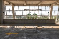 This photo captures the urban landscape of Toronto, Canada. The clear sky highlights the city's modern architecture and urban design. An empty parking lot with arrow markings on the floor can be seen, symbolizing the busy city life and the constant flow of traffic. The concrete streets and driveways lead to the entry of a parking garage with large windows, reflecting the vibrant energy of the city. This image represents a typical day in Toronto, where the urban environment and efficient parking infrastructure are integral parts of city living.