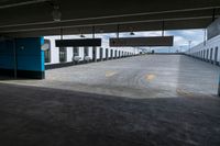 An empty parking garage in the heart of Toronto, casting hard shadows against the concrete surfaces. People eagerly wait as a train sits in its compartment, ready to transport them into the bustling city. A glimpse into Toronto's urban design and city life.