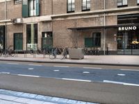 A modern cityscape in Holland, Netherlands. The architecture ranges from classic to modern, with buildings and warehouses lining the asphalt roads. The urban design showcases a vibrant art district and a bustling city life.