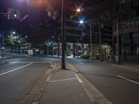 A dark city street illuminated by artificial lights. Modern architecture and urban design create a stunning cityscape. The road surface and buildings blend seamlessly with the lights, giving a vibrant city life feel.