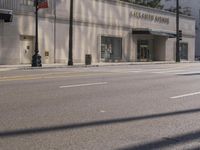 This stock photo captures the entrance to a classic architecture building in Los Angeles, California, USA. The building is located on a street corner, next to a sidewalk. The architecture features a beautiful facade with windows and a storefront. The surrounding urban environment includes asphalt roads, trees, and vegetation. The photo was taken during the day, showcasing the vibrant city. The image depicts the intersection of architecture, urban design, and public space in Los Angeles.
