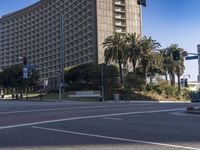 A sunny day in Los Angeles, California. Modern architecture dominates the city skyline with skyscrapers and office buildings. Residential neighborhoods lined with trees and street lights create a vibrant urban atmosphere.